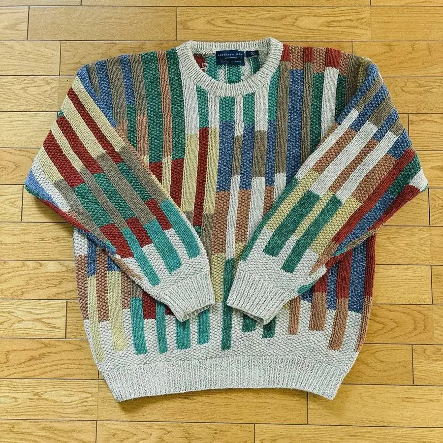 [ 손뜨개질 ] 멀티 컬러 스트라이프 니트 스웨터 스다 마사키풍