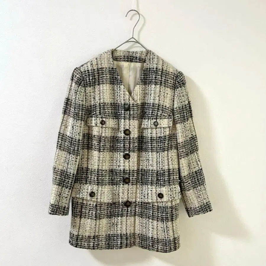 4257 하나뿐인 노카라 트위드 자켓 긴 길이 레트로 빈티지