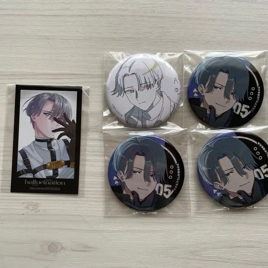 해당 상품은 MILGRAM LIVE EVENT, hallucination의 카드와 팝업스토어 캔뱃지, 가라오케의 철인 콜라보 캔뱃지 3개의 세트입니다.
