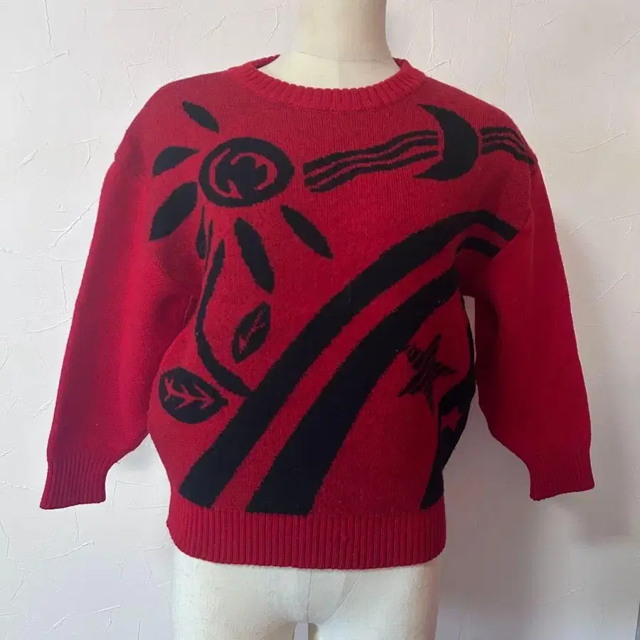 ◆ 크루넥 니트 스웨터 풀오버 니트웨어 웜웨어 80년대 90년대 빈티지 아카이브 y2k 페어리 그런지 80s 90s 꽃 플라워 별 달 모티브 패턴 개성있는 레트로 구제 의류 USED