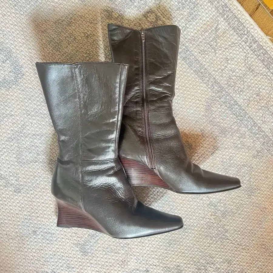 Lautreamont 가죽 숏부츠 스틸레토 웨지솔