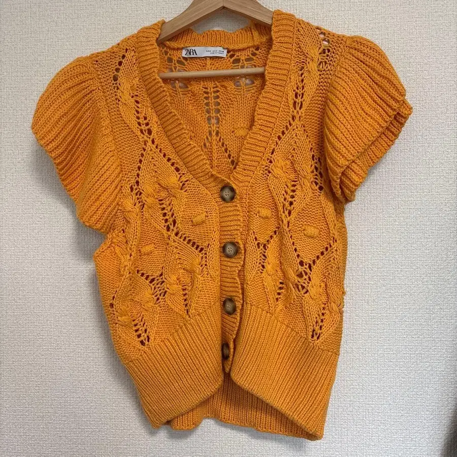 ZARA 오렌지 컬러 반팔 니트 가디건