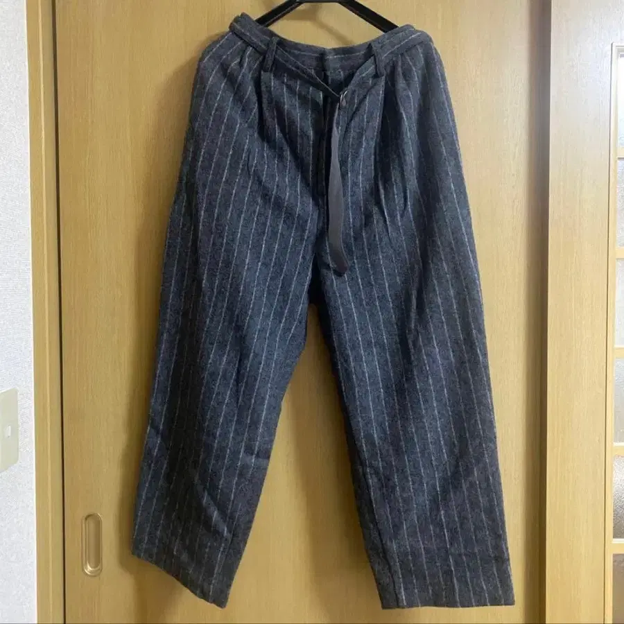 Enharmonic TAVERN 다크 그레이 스트라이프 패턴 와이드 팬츠