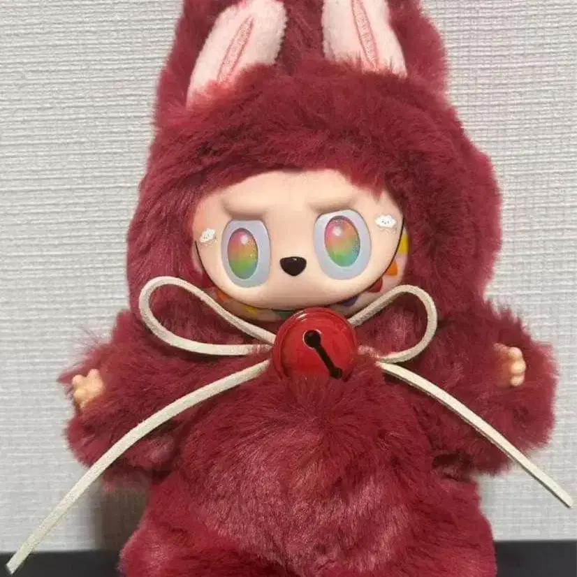 지모모 Labubu 토끼 코스튬 봉제 인형 레드 리본&방울 포함