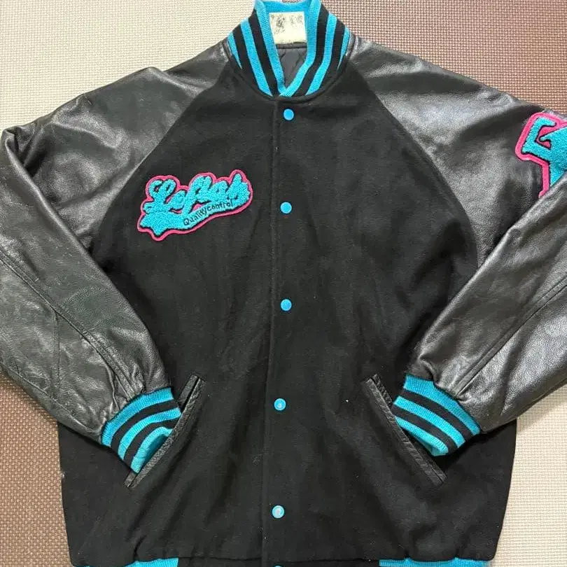 레트로 스타일 바시티 자켓 블랙/터콰이즈