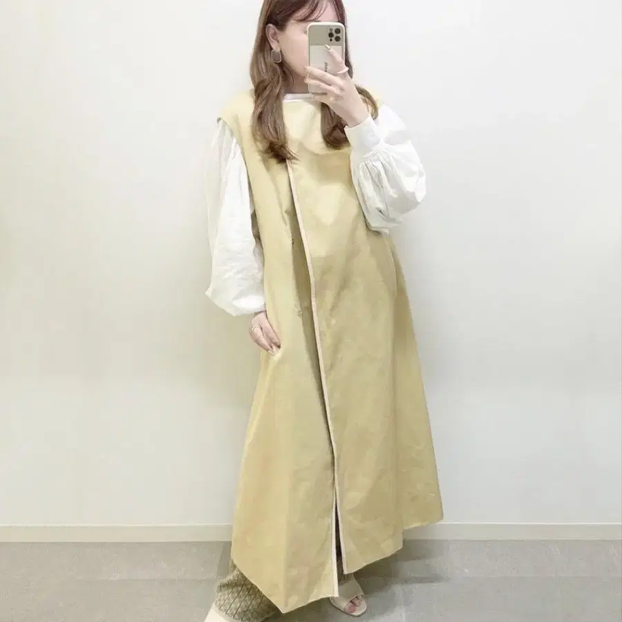 미사용 1.3만엔 아이엠 베이지 롱베스트 베스트 코트 노카라