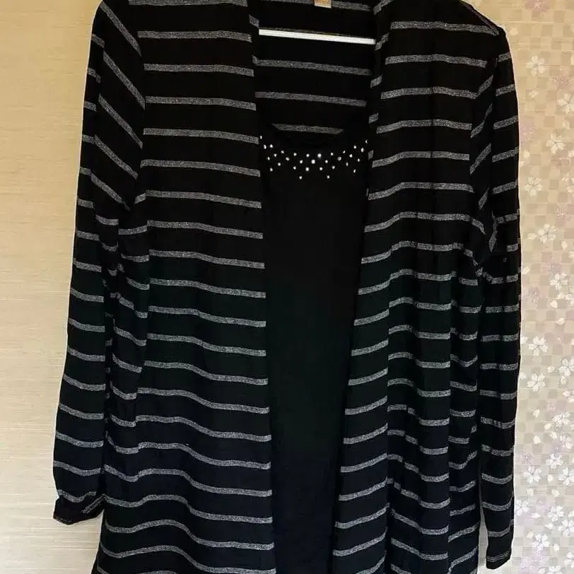 자동 번역되었어요. 원문보기블랙과 그레이 스트라이프 디자인의 긴팔 가디건,