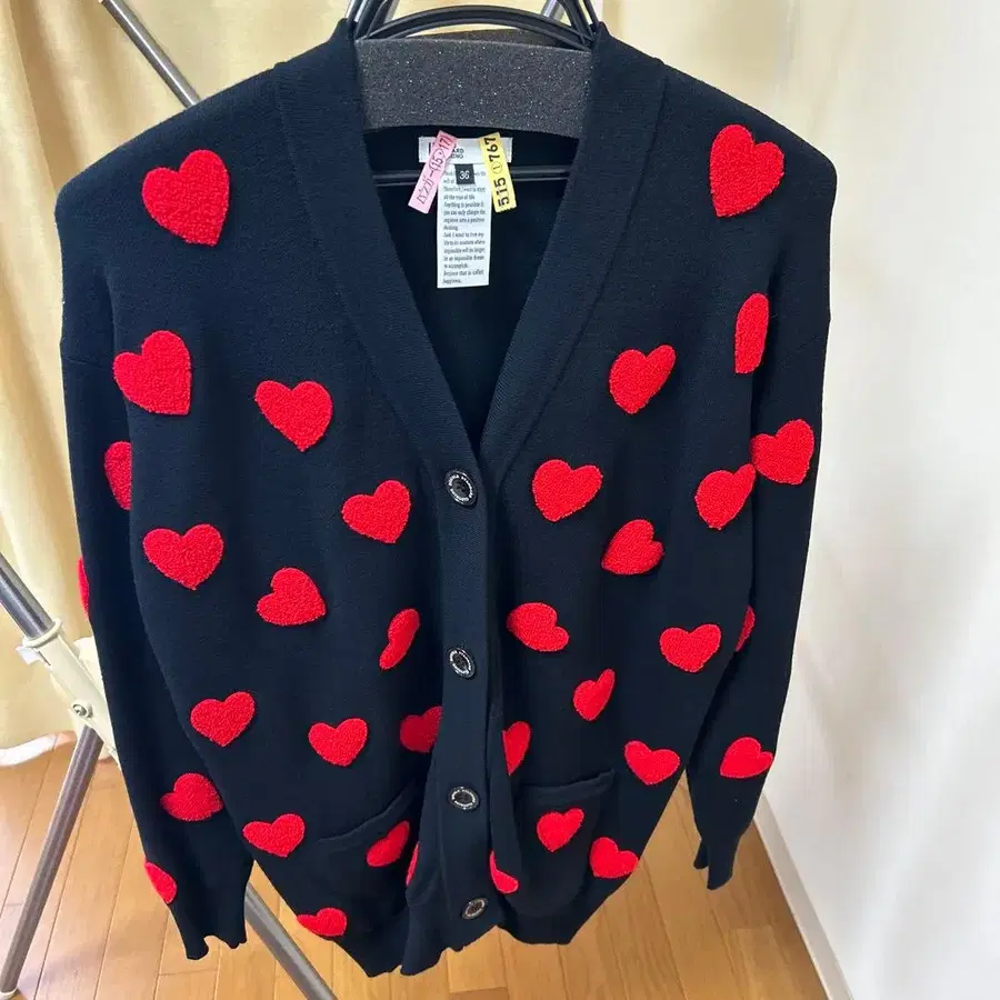 더블 스탠다드 클로징의 하트 무늬 블랙 긴팔 가디건