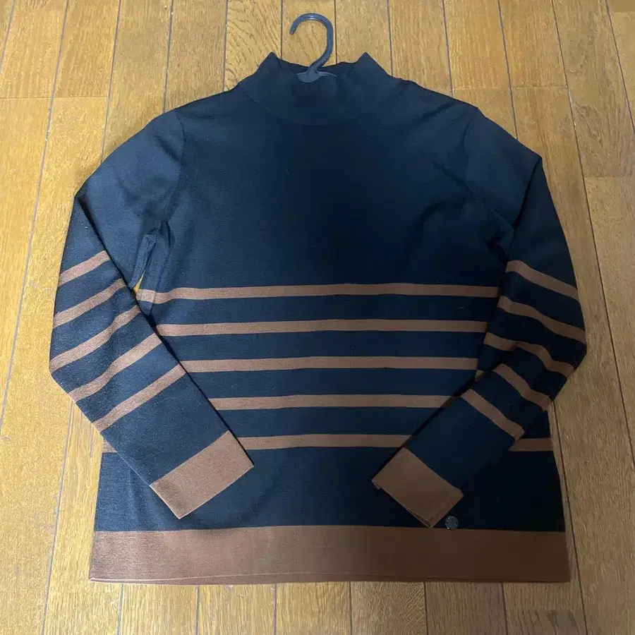 새상품급 매킨토시 런던 울 하이넥 니트 블랙 브라운 보더 38