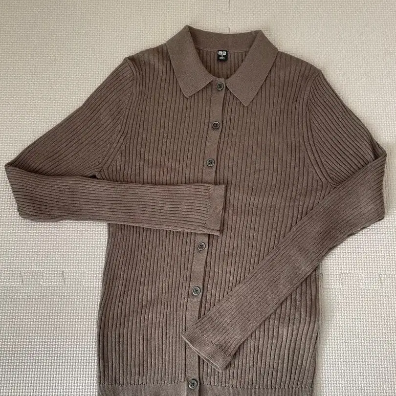 유니클로 메리노 블렌드 리브 폴로 가디건 그레이 M 뉴앙스 컬러