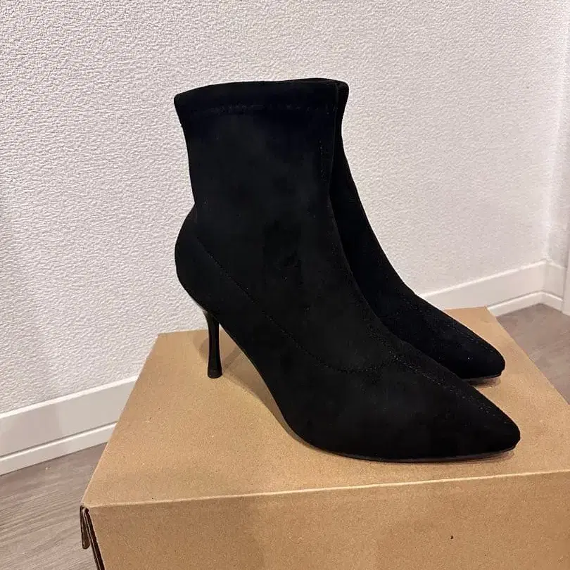 블랙 스웨이드 스틸레토 앵클부츠