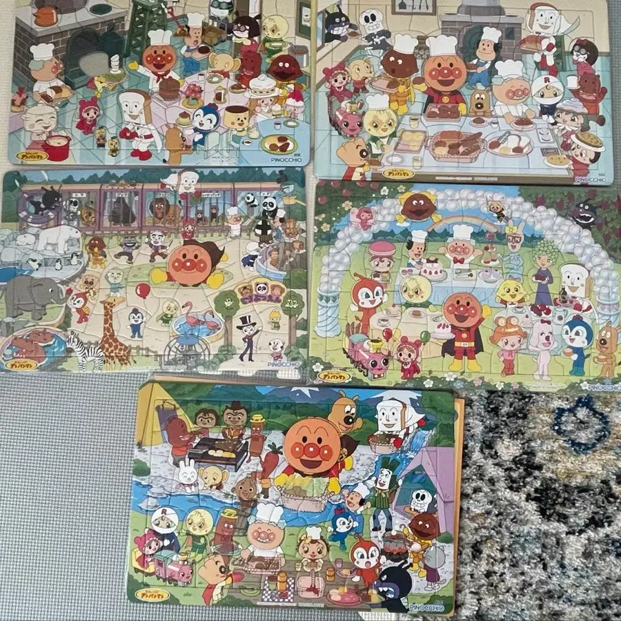 호빵맨 퍼즐 5장 세트 판매 미사용 1장 있음