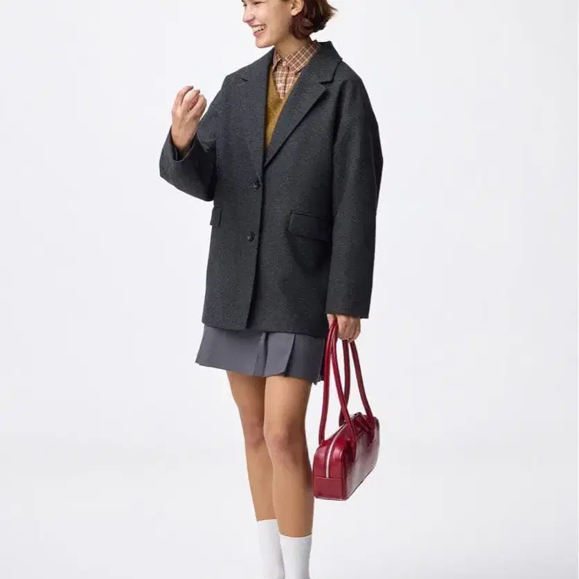 GU 코지 멜톤 하프 코트 L 사이즈 다크 그레이