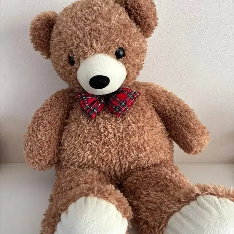 브라운 리본 포함 봉제 인형