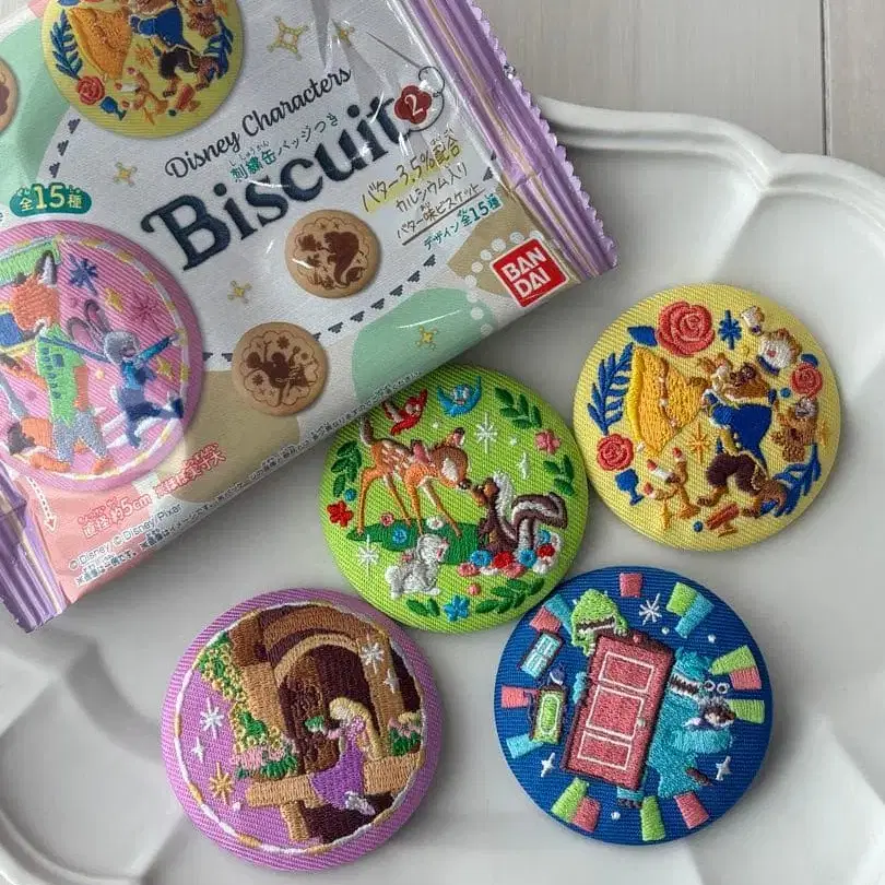 디즈니 자수 캔뱃지 2 미녀와 야수 라푼젤 몬스터 주식회사 밤비