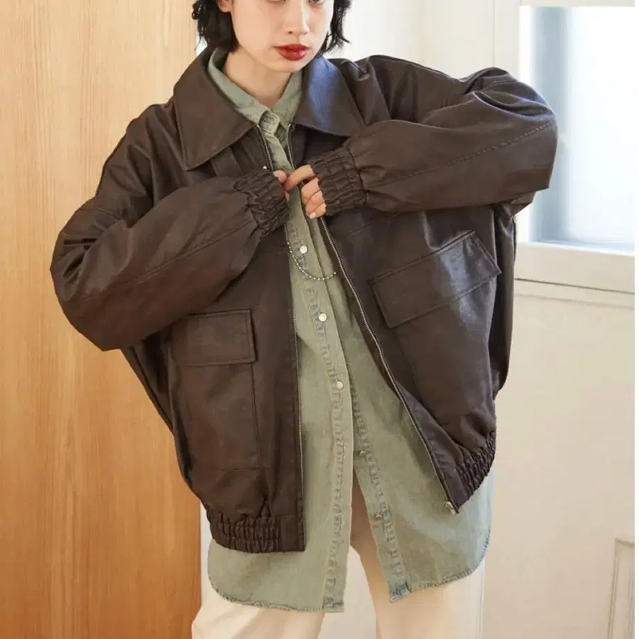 NICE CLAUP [ RMAF ] 빈티지 가공 인조 가죽 블루종