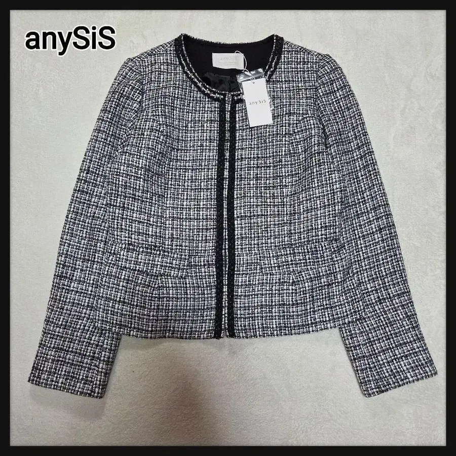 [택 포함 새상품] anySiS 트위드 노카라 자켓 비쥬 2