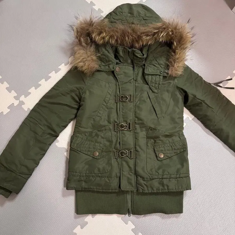 y2k 헤이세이 갸루 퍼 달린 모즈 코트 카키 아우터