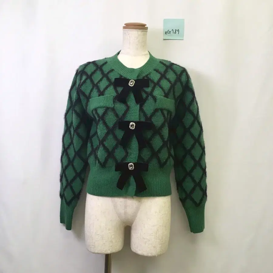 가디건, 비쥬, 리본 장식, 페이크 포켓