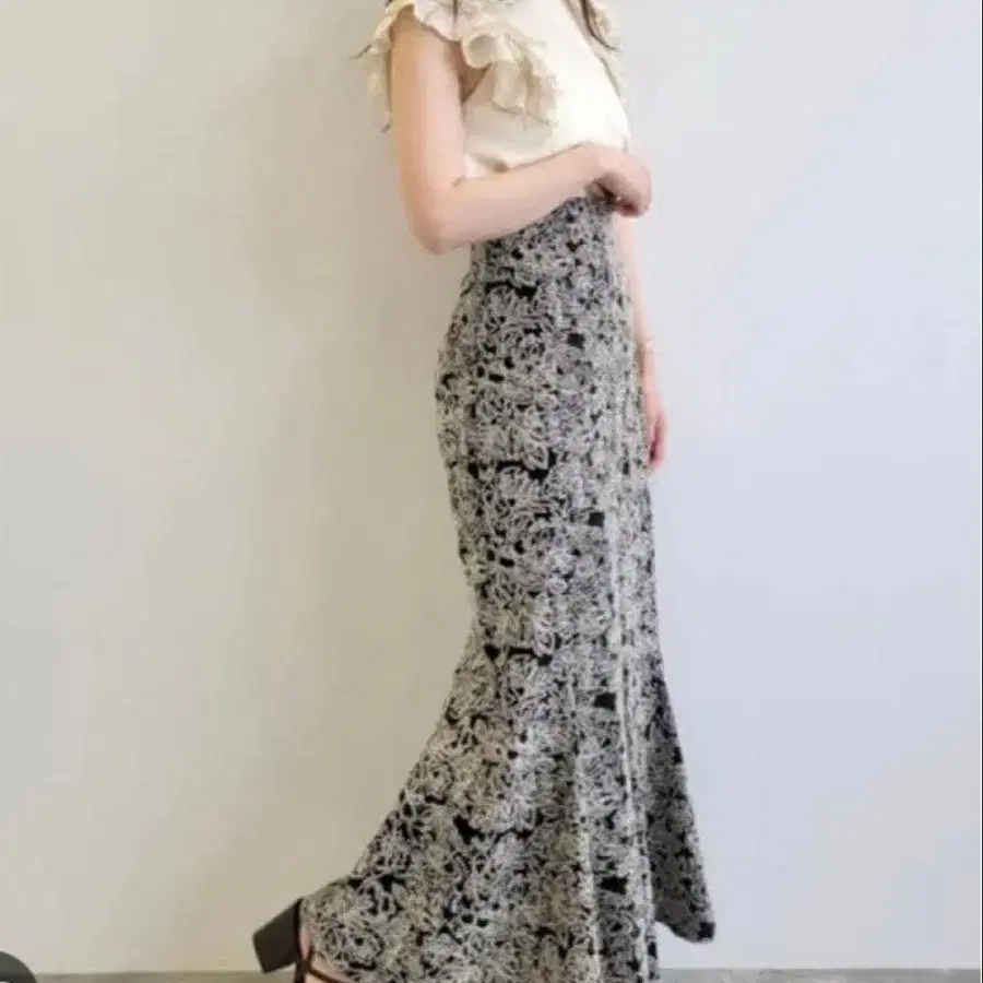 코코딜 라인 플라워 배색 자수 하이웨스트 머메이드 스커트