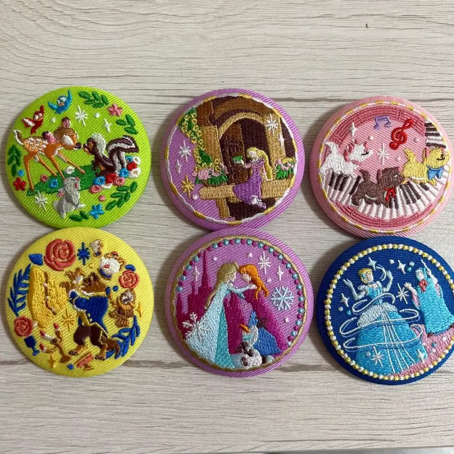 자수 캔뱃지 디즈니 밤비 오샤레캣 미녀 안나 신데렐라