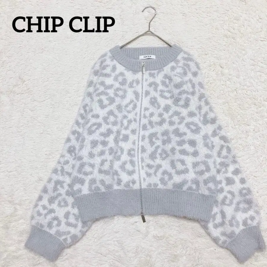 CHIP CLIP 레오파드 무늬 니트 후드티 가디건 L