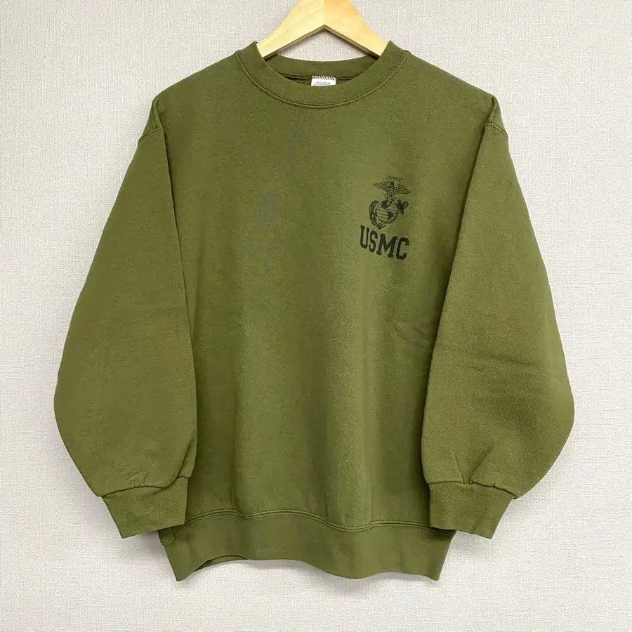 USMC 로고 SOFFE 맨투맨 M 사이즈 올리브 그린