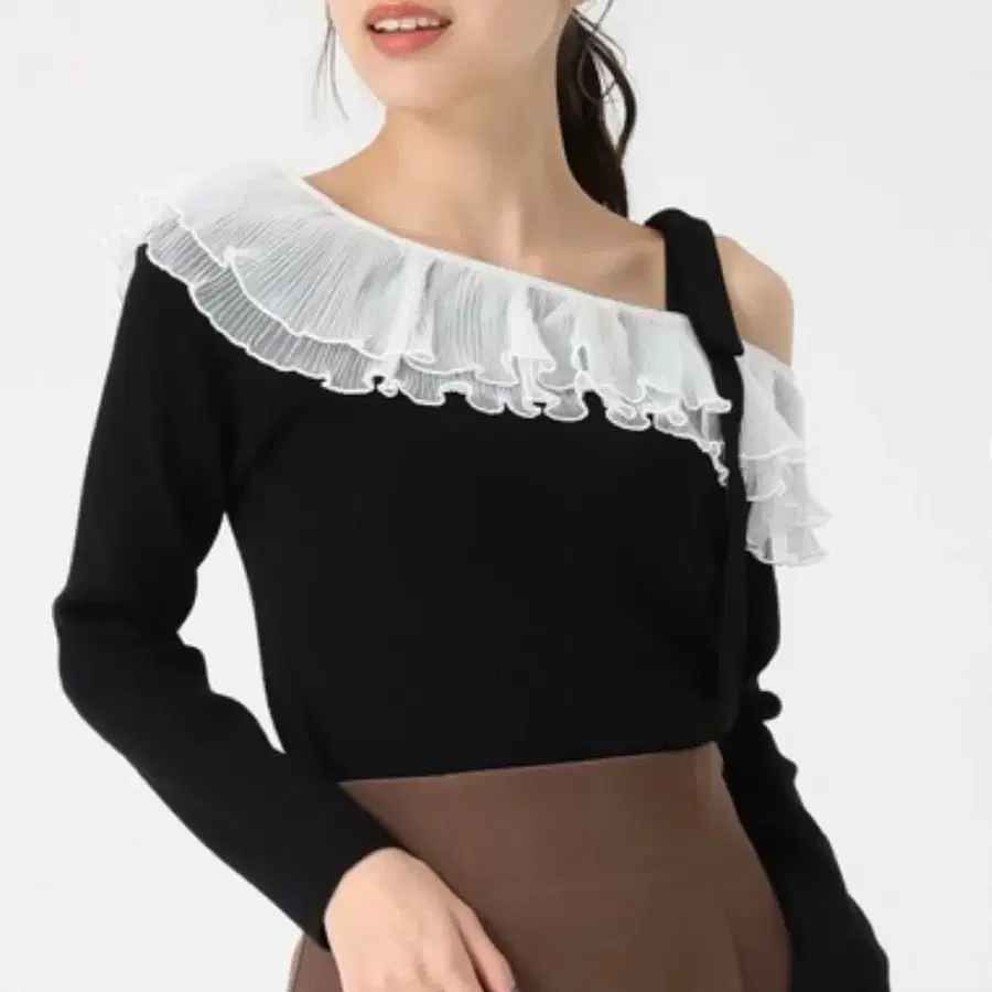새상품 미사용 2025 가을/겨울 신상 어깨 리본 아지메 프릴 니트