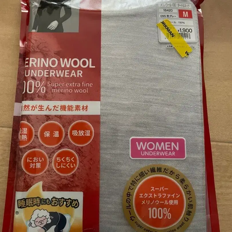 워크맨 여성용 메리노울 100% 언더웨어 긴팔 터틀넥 M