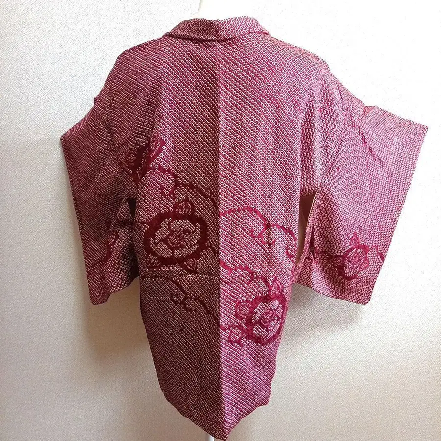 레트로 실크 총조리 장미 무늬 겉옷