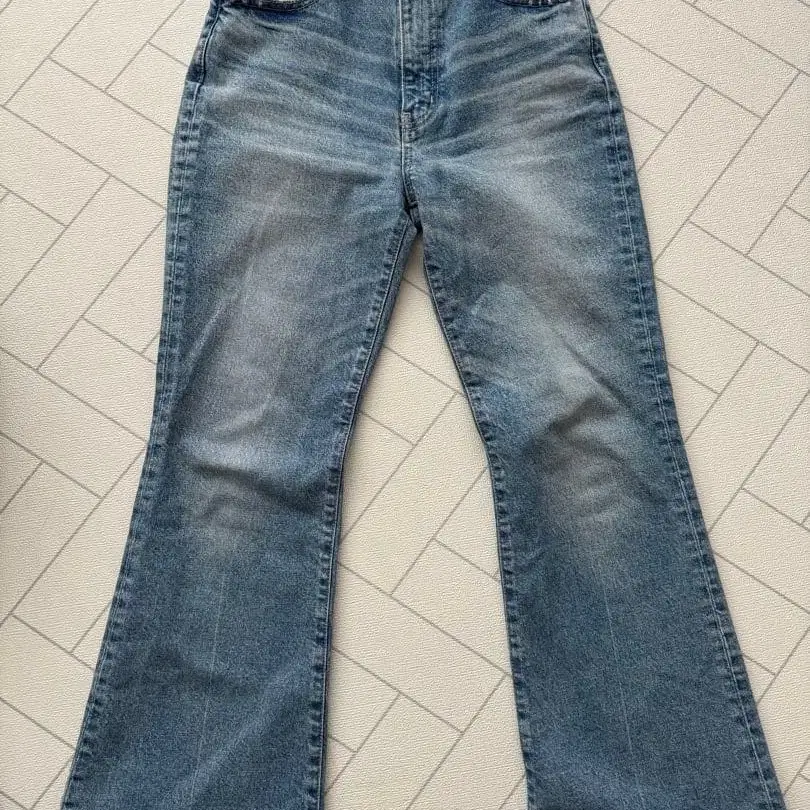높게 설정된 무릎 위치와 밑단을 향한 플레어의 양으로 다리를 길어 보이게 하는 효과를 발휘합니다.