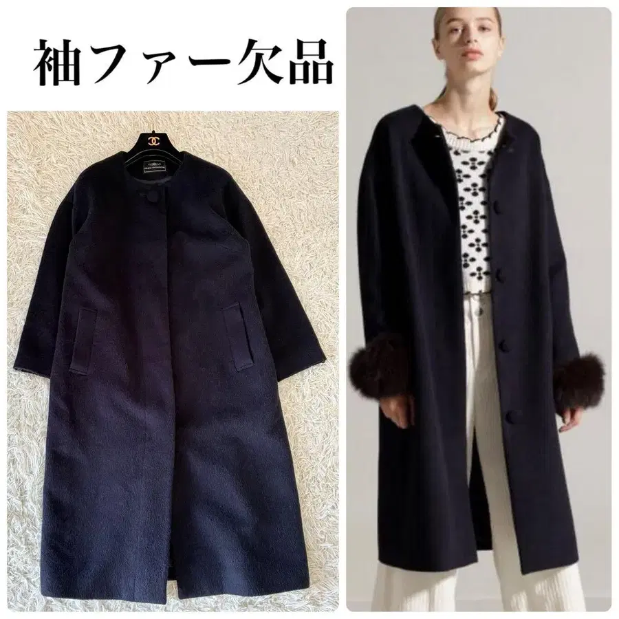 그레이스 콘티넨탈 노카라 코트 울 알파카 다크 네이비