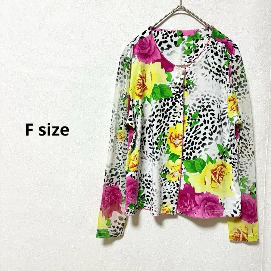 꽃무늬 레오파드 시어 가디건 F 화려한 긴팔 한국제 비침
