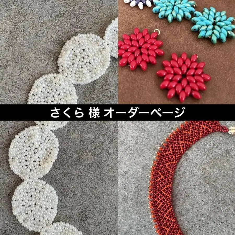 사쿠라님의 오더 페이지입니다. 내용은 이미지 4점입니다. No.220과 체코 비즈 귀찌 x 2는 앞으로 제작합니다. ※ 오더를 받기 전에 제 프로필 내 [ 오더에 대하여 ]를 다시 한번 확인해 주세요. ※ 작업 중간에 이미 완성된 작품을 몇 점 판매할 수도 있습니다. 오더는 우선적으로 제작하므로 안심하세요. [ 체코 비즈 귀찌 ] 금장 장식은 스프링식 귀찌로 준비합니다. 이미지 5장을 확인해 주세요. [ 가격에 대하여 ] 목걸이 길이를 플러스할 경우, 가격을 +100엔부터 적용합니다. [ 제작 기간에 대하여 ] 제작 시작부터 약 1주일을 예상하고 있습니다. 제작 시작은 12/28경이 될 예정입니다. [ 구매 시 주의 사항 ] ◆ 비즈와 부품은 땀, 화장품, 기타 화학 약품의 부착 등, 태양광에 의해 변색될 수 있습니다. 사용 후에는 부드러운 천으로 땀과 물기를 닦아주세요. 사용하지 않을 때는 햇빛이 들지 않는 곳에 보관해 주세요. ◆ 핸드메이드이므로 기성품보다 섬세하게 만들어졌습니다. 장착은 조심스럽게 해주세요. ◆ 하나하나 정성껏 만들고 있지만, 예민하신 분, 완벽을 추구하시는 분은 구매를 삼가해 주세요. ◆ 상품 이미지는 최대한 실물과 가까운 색감으로 게재하고 있으나, 사용하시는 브라우저나 빛의 정도에 따라 약간 색감이 다르게 보일 수도 있습니다. 이 점 이해해 주시면 감사하겠습니다. 불분명한 점 등이 있으시면 언제든지 질문해 주세요. #비즈목걸이 #핸드메이드목걸이 #손뜨개질목걸이 #에스닉액세서리 #민족액세서리 #프린지목걸이 #컬러풀액세서리 #보헤미안스타일 #썸머패션 #포인트컬러액세서리 #개성있는액세서리 #내추럴패션 #리조트코디 #페스티벌패션 #hohojiro #HOHOJIRO 소재 - 비즈 금속 알레르기 - 금속 알레르기 방지 아이템 - 일련 목걸이 체인 소재 - 비즈 모티브 소재 - 비즈