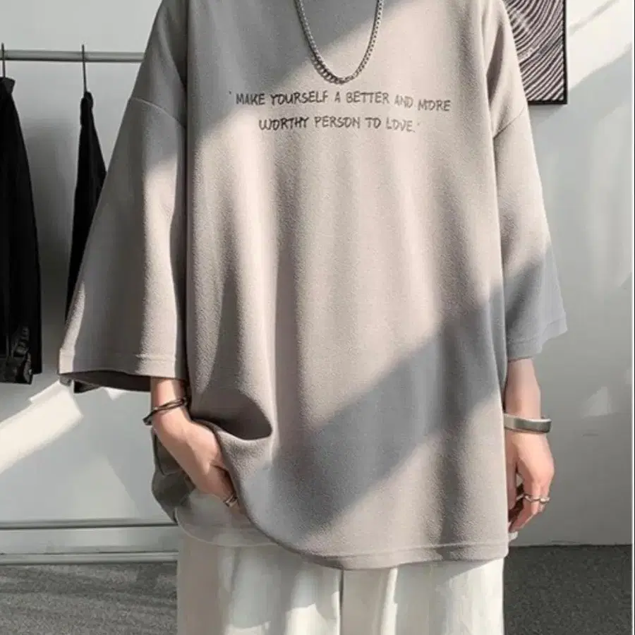 그레이 오버 사이즈 T셔츠 메시지 프린트