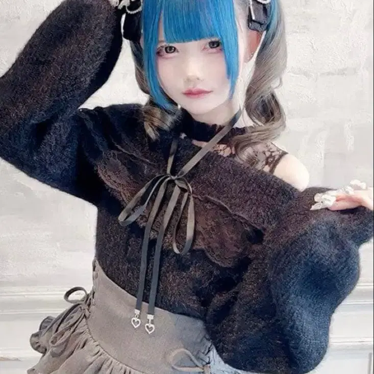 [ MA*RS ] 오프 롤 샤기 니트탑 - 블랙 size-F