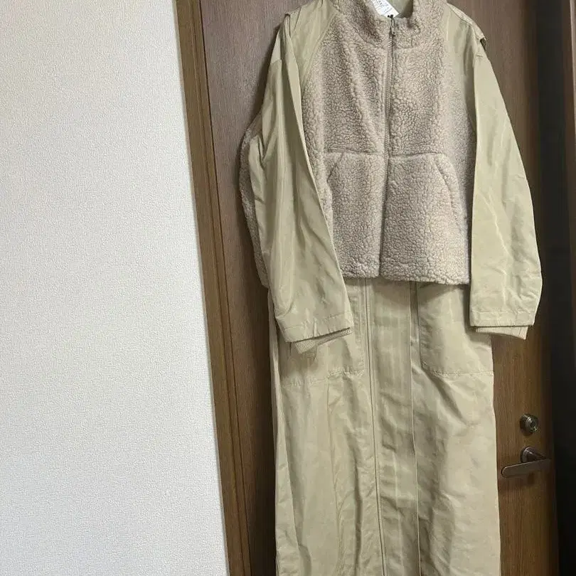 베이지 플리스 자켓 롱 코트