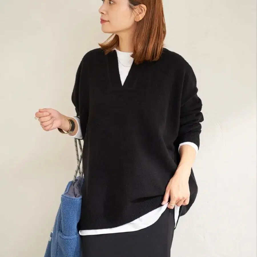 한 장만 입어도, 코트 안에 입어도 좋은 적당한 두께감입니다.