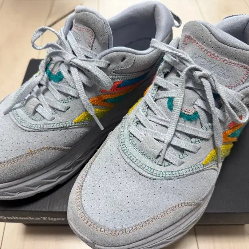 HOKA 호카 그레이 멀티 컬러 자수 스니커즈