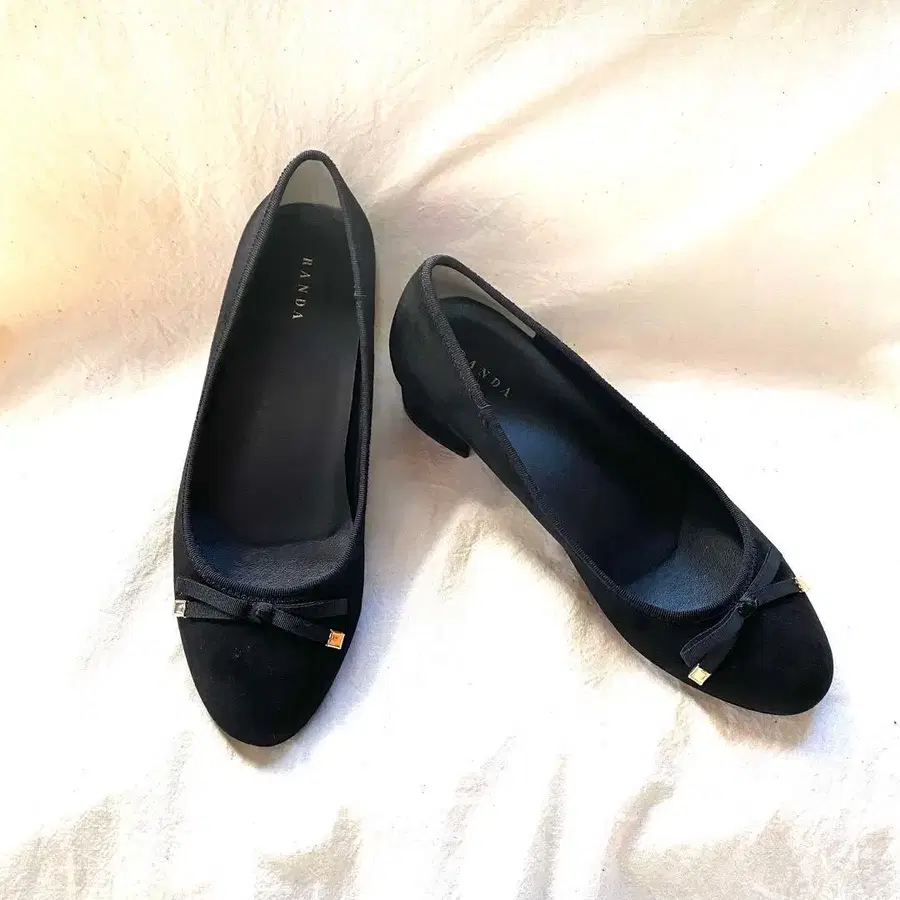 미사용급 RANDA 란다 라운드토 발레 슈즈 22 리본 블랙