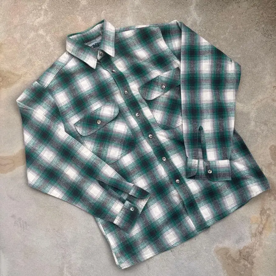 90s 옴브레 체크 헤비 플란넬 셔츠 USA 제조