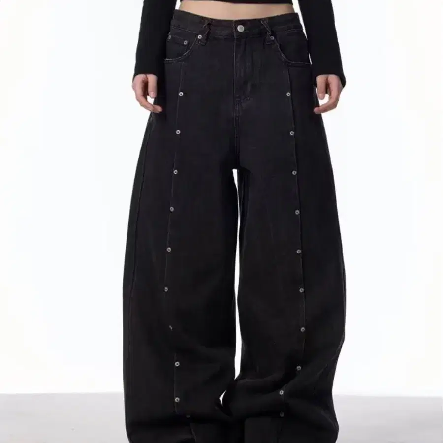 블랙 와이드 팬츠 스냅 버튼 포함 빅 사이즈