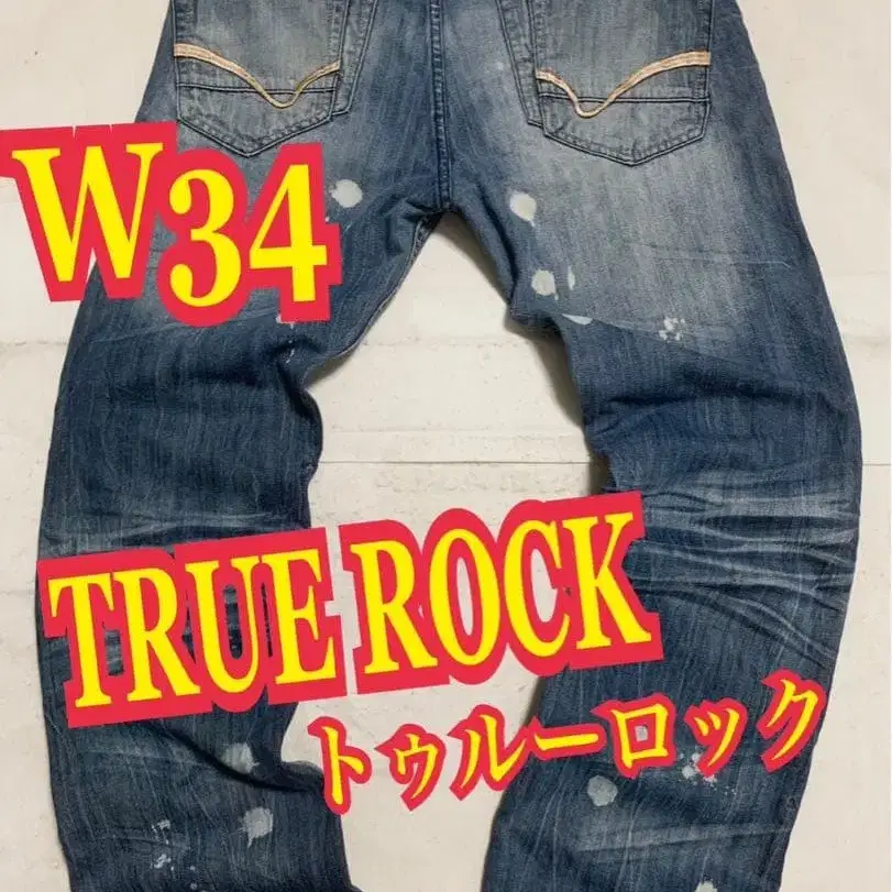 TRUE ROCK 데님 팬츠 청바지 페인트 가공 스트레이트 W34