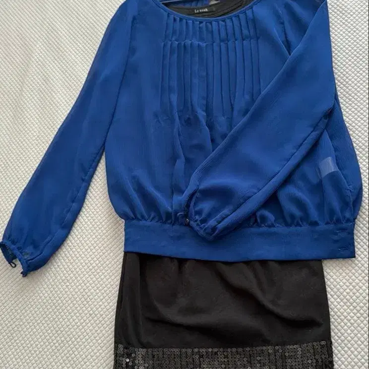 [ 새상품급 ] Le souk 파랑 슬리브리스 원피스