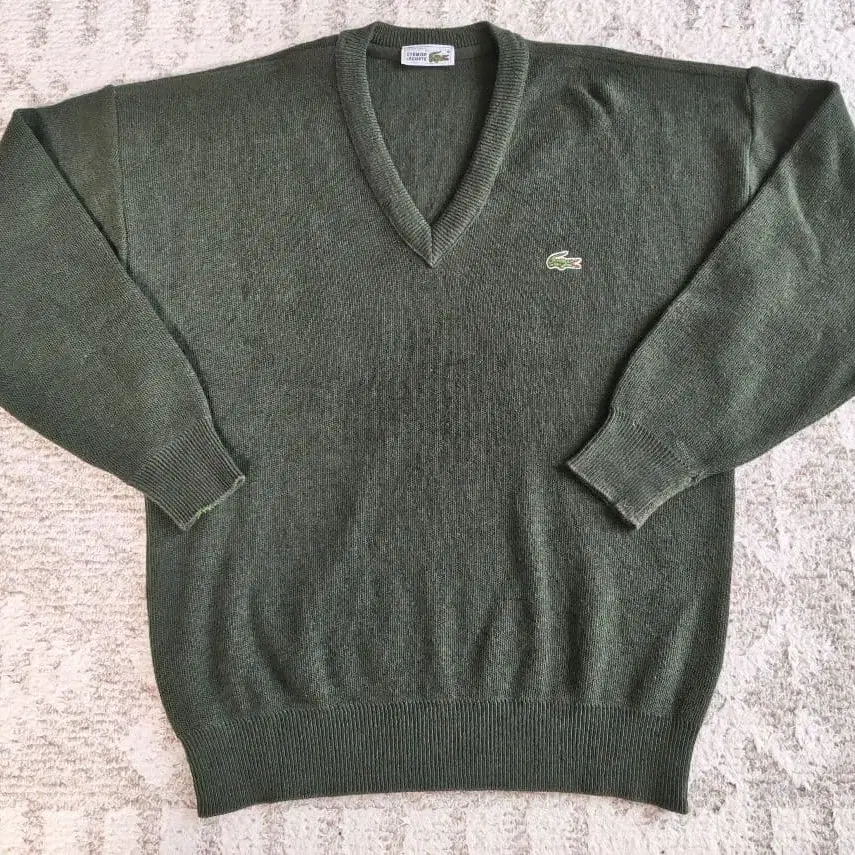 자동 번역되었어요. 원문보기올리브 그린 LACOSTE V넥 니트 스웨터, 프랑스제, 악어 자수 포함.