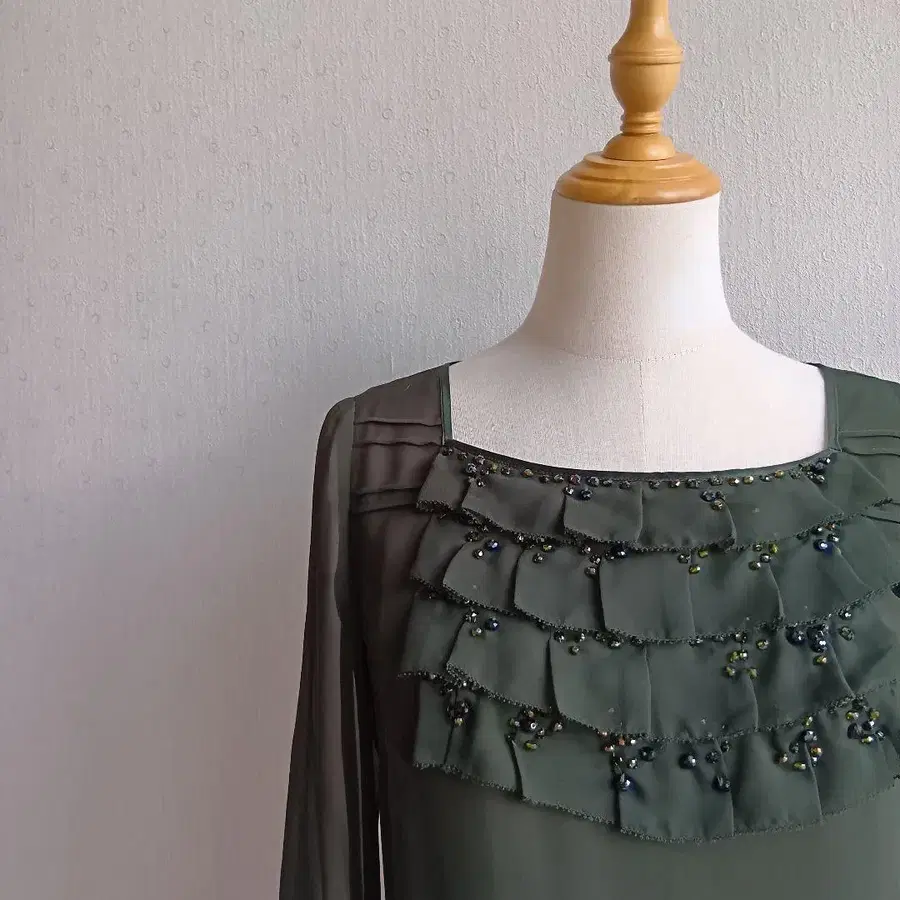 AUSTIN REED 비쥬 자수 튜닉 원피스 실크 100%