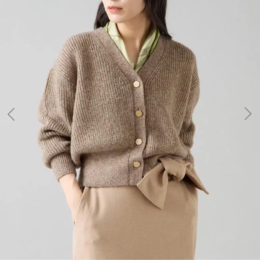 모카 베이지 V넥 버튼 포함 라메 믹스 가디건 프리 사이즈