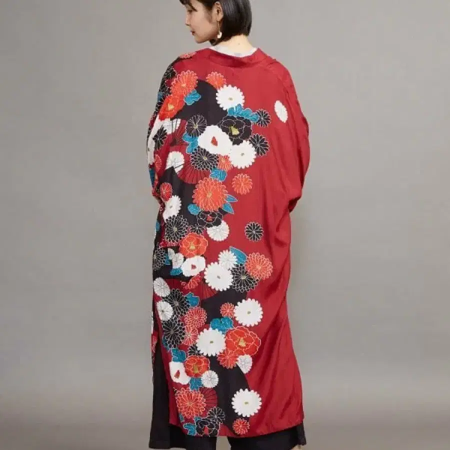 자포니즘 축하 장옷 빨간색 부채 가을 가디건 앤티크 다이쇼 로망