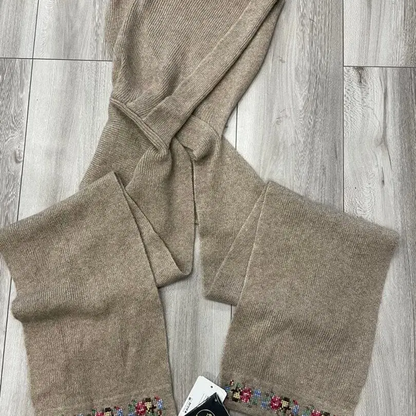 후드 부착 베이지 니트 캐시미어 머플러 택 포함 새상품
