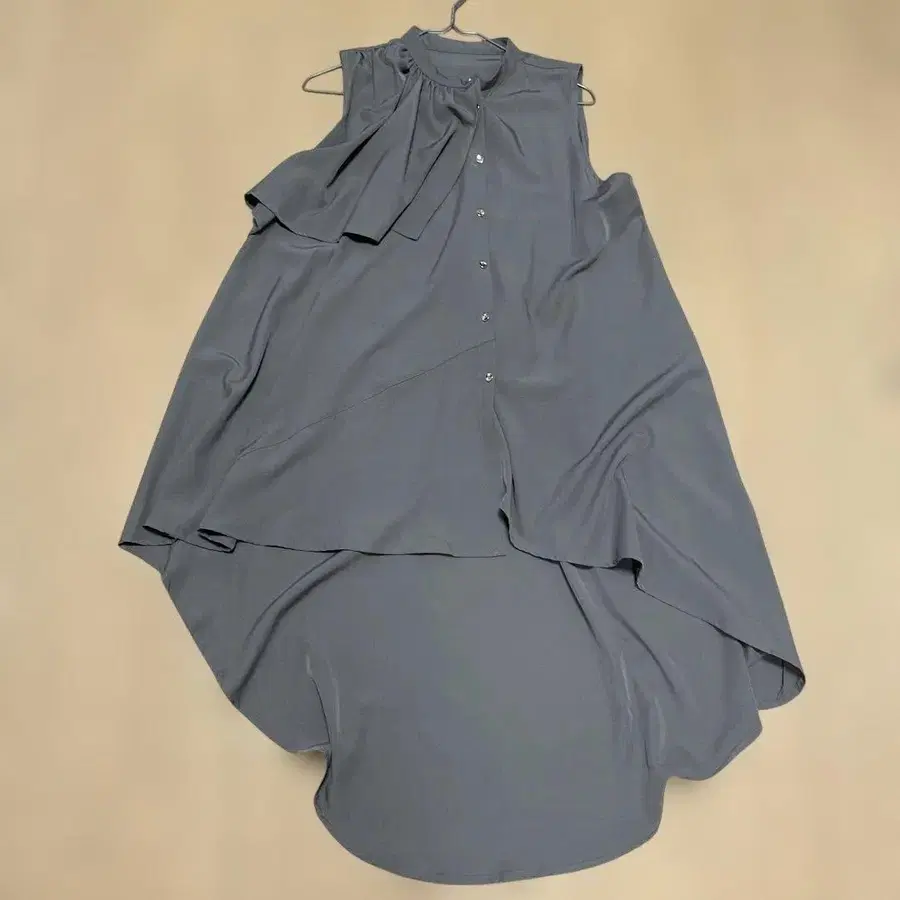 미사용 그레이 슬리브리스 비대칭 셔츠